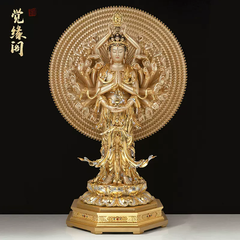 觀音擺件 純銅觀音擺件站龍龜觀音菩薩家居玄關佛堂佛像大號南海觀世音菩薩